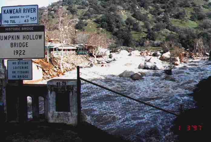Looking upstream from the Gateway bridge. Taken at 12:50 pm. 1-3-97. Also, a good view of the fence that was installed in the spring of 1994 to keep boaters from using this location as a Put-In. :(